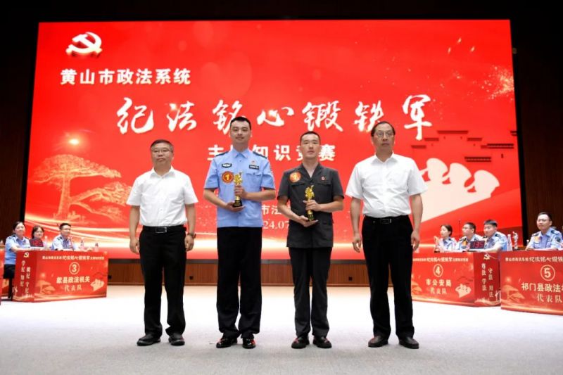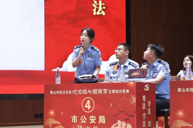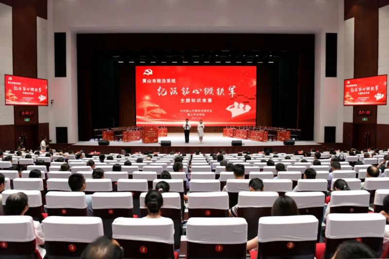 2024年7月24日,黄山市政法系统“纪法铭心铸铁军”主题知识竞赛在市委党校礼堂如火如荼举行,来自各县(区)政法系统和市直政法单位12支代表队36名干警同台竞答,争当认真学纪、全面知纪、对标明纪、笃行守纪的表率。
