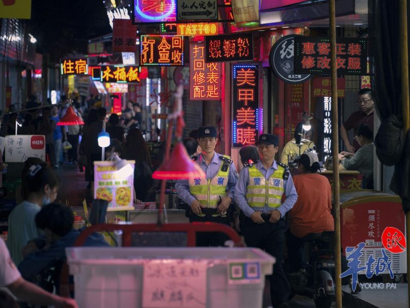 节假日期间,广州公安民警在热门旅游“打卡点”巡逻。