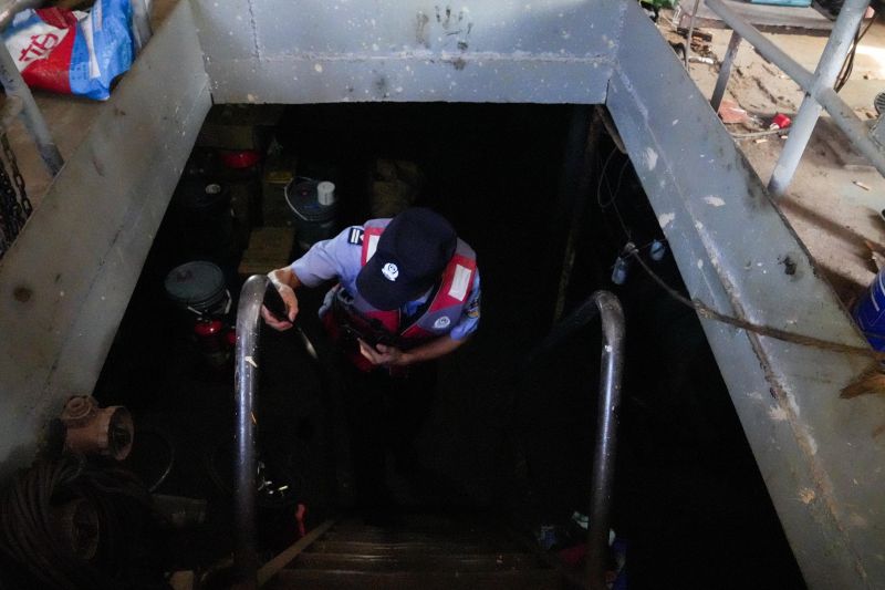 花地口派出所民警谢志坚下船舱机房检查消防设施