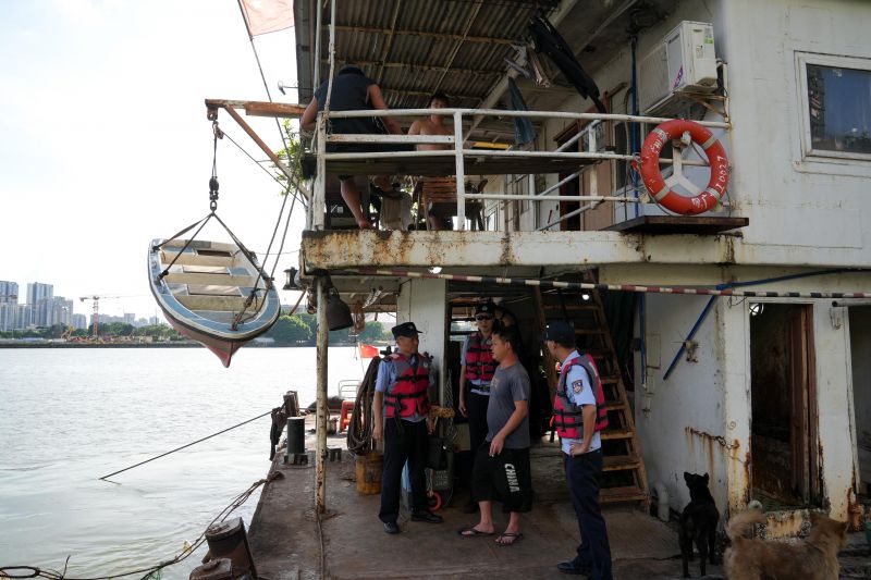 为了救人的速度能够快一点、再快一点,花地口派出所警察晚上直接和衣睡在码头——由集装箱搭成的警务室。因为每年百余宗救人警情,大部分发生在夜间。辅警陆浩辉印象里,最忙的一个晚上,连着出警3次。“其实睡不着,只能稍微眯一下,电话一响人就从床上弹起来。”从警5年多,这种紧张感已经刻进他的骨子里。头枕着波涛,身体跟随江水起伏,意识却始终保持清醒。