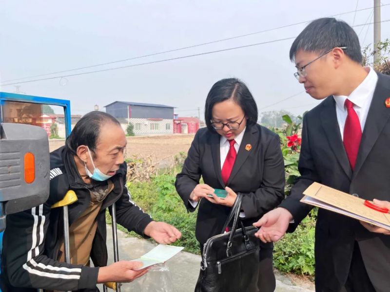 2022年10月,绵竹市法院民庭、行政庭法官为残疾申请人送去司法救助金范露摄