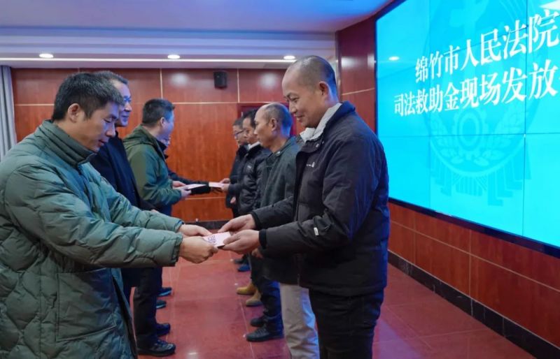 汶川大地震发生后的第21天,绵竹市法院发出了第一笔司法救助金。100多人领到近12万元的司法救助金,他们均是生活特别困难、在地震中又遭受特大损失、且案件暂不具备执行条件的当事人。2009年春节前夕,绵竹市法院再次向21个乡镇的54人次发放了6万元司法救助金。