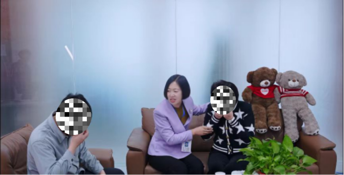 在季春晖的引导下,男方牵住妻子的手,打开了话匣子,女方也笑了。双方当事人气氛逐渐缓和。