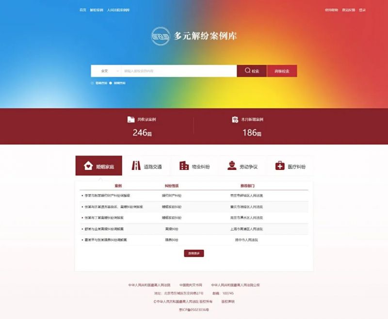 为贯彻落实习近平总书记关于“抓前端、治未病”“要坚持把非诉讼纠纷解决机制挺在前面”等重要指示精神,发挥典型案例示范引领作用,最高人民法院2024年5月启动建设“多元解纷案例库”,经过八个多月的建设和试运行工作,今日,正式上线并向社会公众开放,供国家机关、社会团体、调解组织和社会公众查询、使用、学习、研究。社会公众可以登录网址http://dyjfalk.court.gov.cn访问多元解纷案例库,已经注册人民法院调解平台的用户还可以通过调解平台一键登录多元解纷案例库。