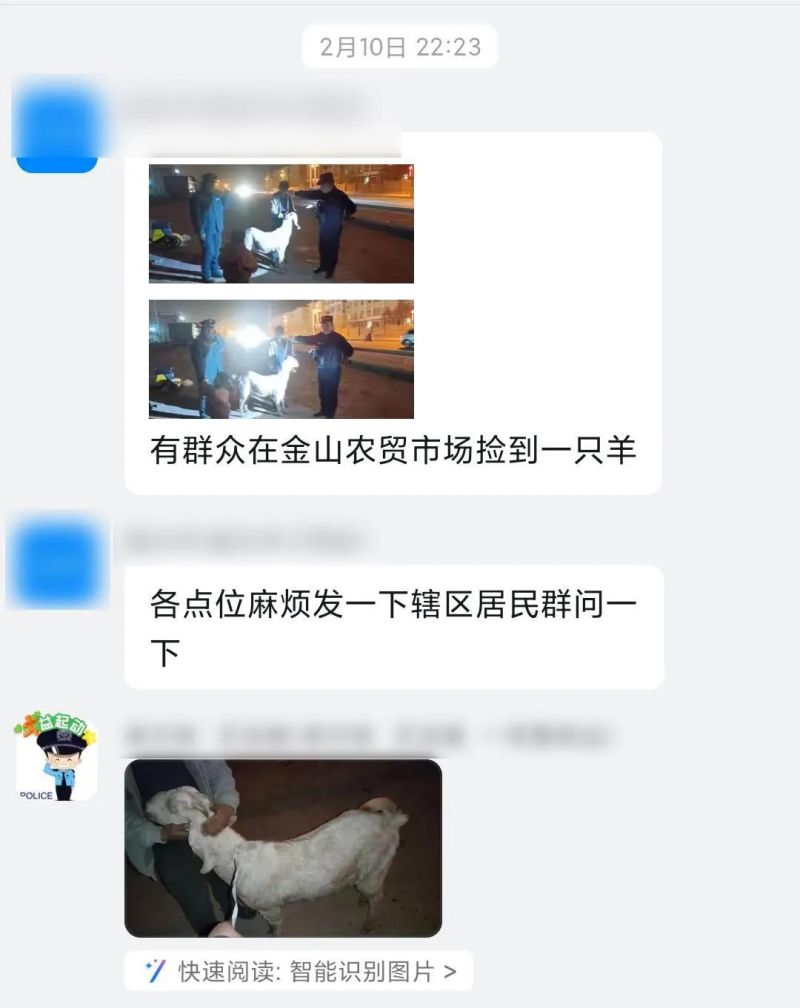 为尽快找到失主,民辅警立即在警民联系群内发布了“寻羊启事”。
