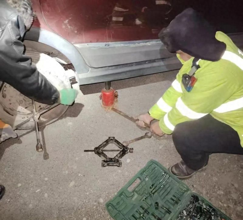 “警察同志,救救急,车爆胎抛锚了,找不到人帮忙……”2月6日凌晨3点10分,一个求助电话打到了新疆兵团第一师金银川垦区公安局交警大队值班室。考虑到这个时间段夜班巡逻组还有巡逻任务,交警大队教导员陈凯立即组织大队本部民警辅警迅速赶往现场帮忙。