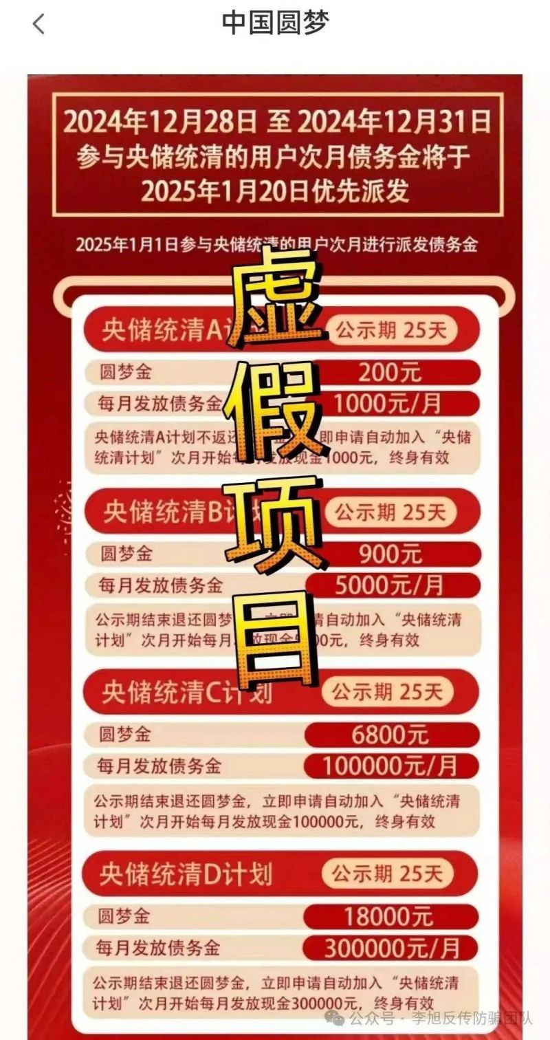 通常骗子会以特别“官方”的词,吸引眼球。例如“央储”、“国家政策”“财政补贴”之类或者冒充国家某部门的名义,编造国家相关政策,以获取受害人的信任,引诱你下载骗子制作的虚假APP,例如:“中华圆梦”APP,并告知这是国家给予APP投资者的高额返利回报,声称只要缴纳几千至几万不等费用后,就能清空债务,还能发放债务金,并且先缴先发,直至发现已被骗。