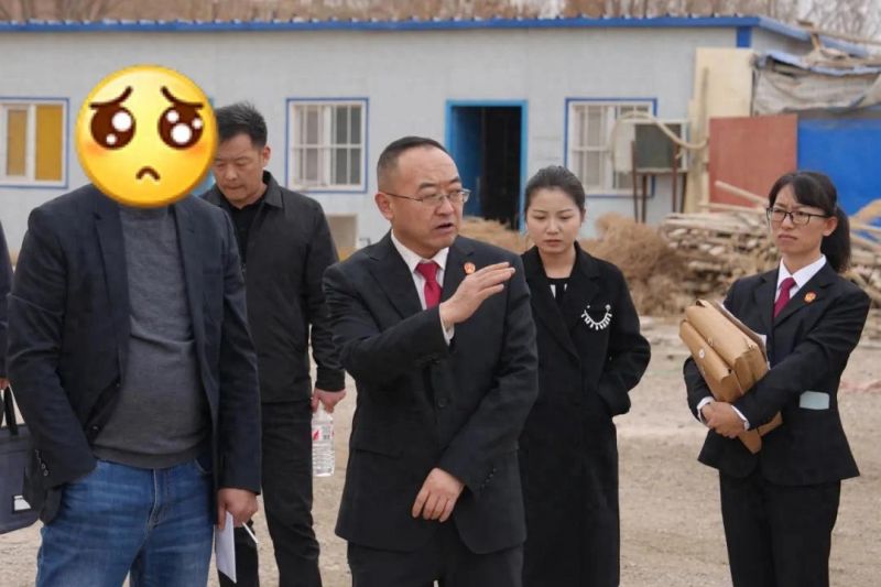 图木舒克市人民法院党组书记、院长李生兵带领合议庭法官和图市经开区管委会工作人员在工地了解情况。