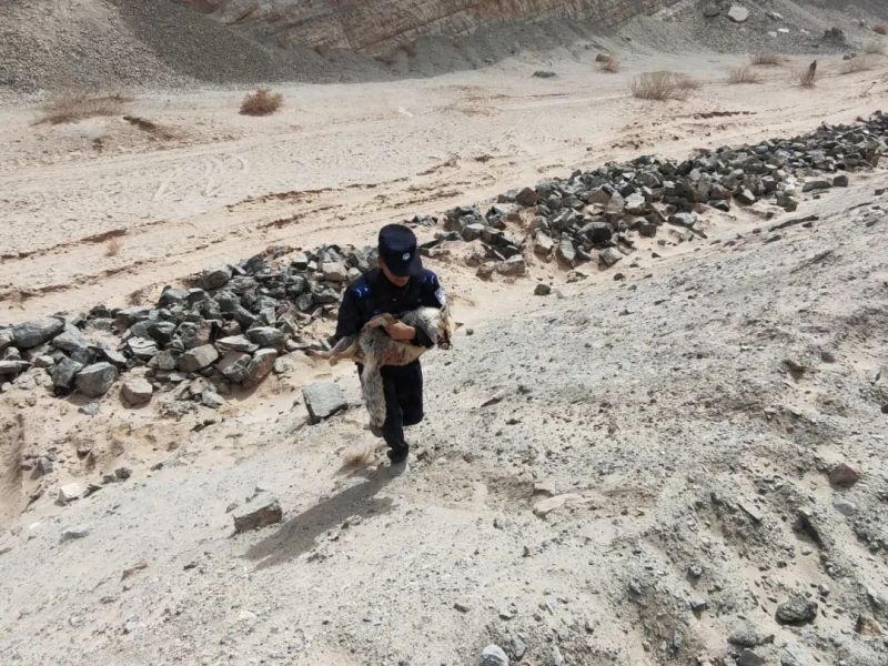 民辅警带着狐狸来到警务室,并联系动物救助站工作人员前来对狐狸进行专业诊治。一小时后,救助站相关人员带着齐全的诊治装备匆匆赶到警务室。经现场辨认,该野生狐狸为国家二级保护动物——赤狐,他们对赤狐进行了全面而细致的检查,随后将它带回妥善安置。待其后腿伤势完全康复,便会让它重回大自然,再次自由奔跑在这片广袤的戈壁滩上。