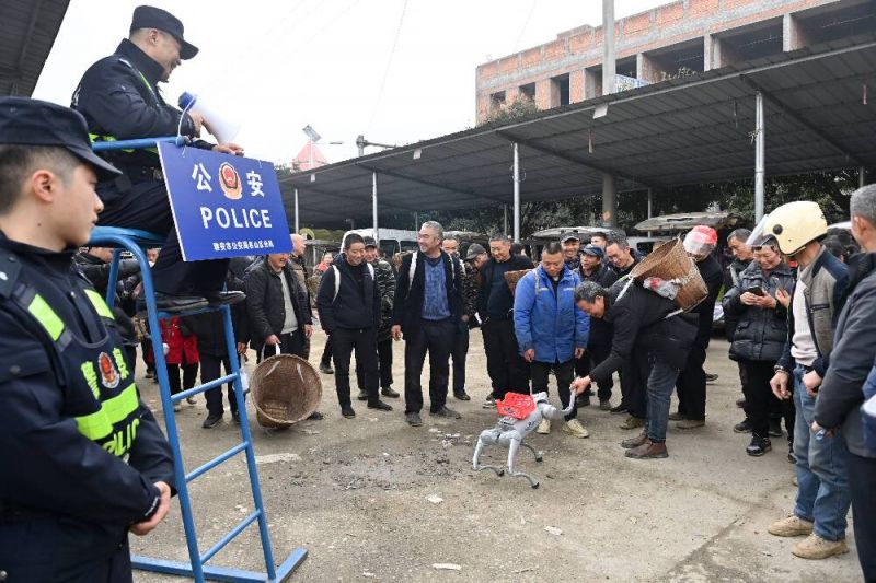 “机器狗儿进茶园,就像姥姥进观园;美景如画醉心田,各位老乡听我言;开车不要把酒端,平安才能把家还;转账交易看清楚,骗了茶钱人心寒……”近日,一只警用机器狗背着普法宣传单,在四川省雅安市名山区的茶园和茶市里一边走一边喊话。天上,无人机也在同步开展空中巡逻,反诈宣传,安全提醒等工作。新颖且科技感满满的宣传方式,吸引了不少茶农、茶商、游客的注意,大家除了认真聆听播放的内容,主动拿取宣传资料外,还纷纷掏出手机拍照、录像,在轻松愉快的氛围中掌握了反诈技巧和法律知识。