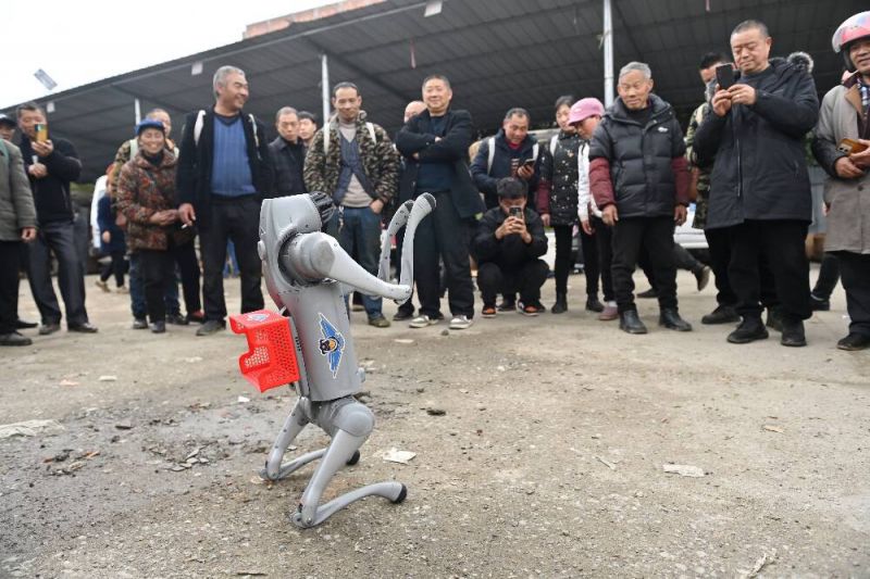 为加强茶园和茶市的安全宣传和秩序维护,雅安市公安局特警支队警务航空大队派出了警用机器狗和无人机。银色的机器狗背着红色的小筐,里面放着反诈、森林防火、交通安全等资料,一边“吆喝”着防诈骗宣传知识,一边迈着小脚奔跑在茶园小道上。它和茶农“卖萌”握手,坐起来“鞠躬”,还和路边小奶狗“比赛跑步”。