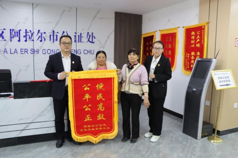 日前,阿拉尔公证处党员、主任孔令旗公证员上门为90岁老人办理继承公证,得到了老人的好评,并委托家人送来一面写着“公平公正便民高效的”一面锦旗,以表诚挚的感谢之情。