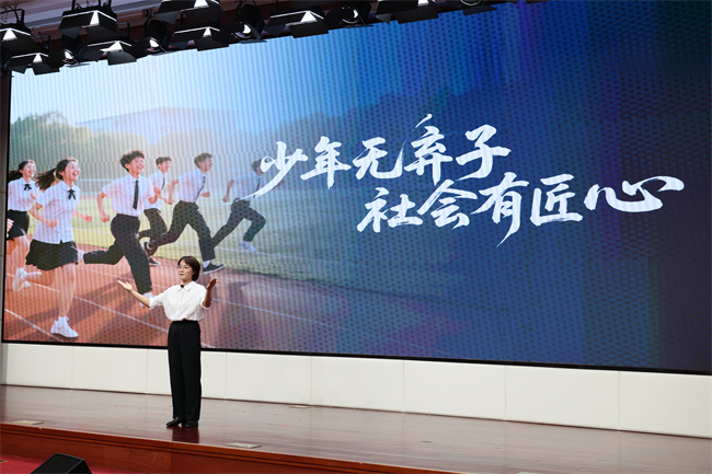 在开放日活动现场,与会嘉宾及师生代表一同观看了由检察官、司法社工自编自导自演的未成年人法治情景剧《向阳而生》。来自地方党委社会工作部门、检察机关、社会工作服务机构以及寄读学校的5位代表分享了未成年人成长过程中的法治故事,生动展现了检察机关与党委社会工作部门、司法社工及社会各界协作关爱保护少年儿童健康成长的决心与行动。