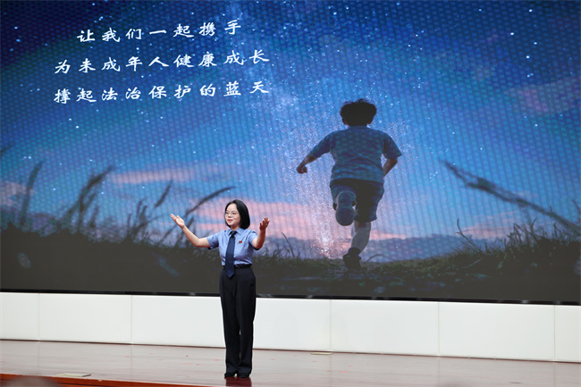 “未成年人保护工作没有最好、只有更好,需要各方一起努力,共同为未成年人健康成长撑起法治蓝天。”童建明在致辞时指出,检察机关作为国家法律监督机关和保障国家法律统一正确实施的司法机关,检察履职贯穿未成年人司法保护全过程,在未成年人保护中肩负重要责任。近年来,全国检察机关认真贯彻实施未成年人保护法、预防未成年人犯罪法,坚持对侵害未成年人犯罪“零容忍”,落实“教育、感化、挽救”方针,做实“预防就是保护、惩治也是挽救”,强化未成年人犯罪预防和治理。加强未成年人“四大检察”综合履职,携手推动“六大保护”协同发力、形成合力。守护未成年人健康成长是全社会共同的责任。检察机关将深入学思践悟习近平法治思想,持续深化与未成年人保护有关部门的务实合作,共同做实未成年人保护工作。未成年人是祖国的未来、民族的希望。希望同学们自觉养成法治意识、提升法治能力,争做尊法学法守法用法的“小模范”。