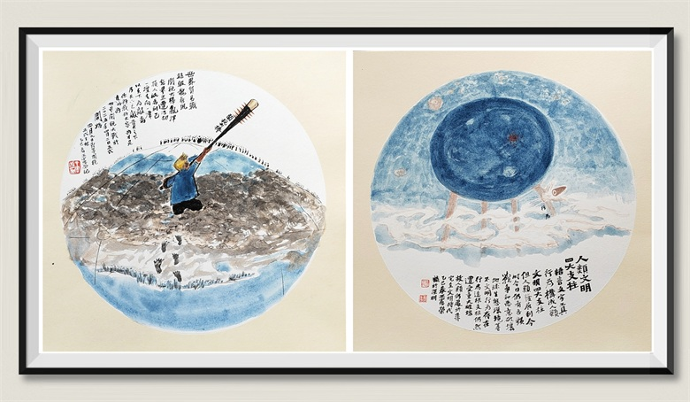 王宪荣绘画作品《超级龙卷风》《文明建设》