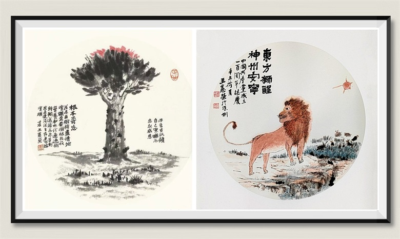 王宪荣绘画作品《根本不可忘》《醒狮图》