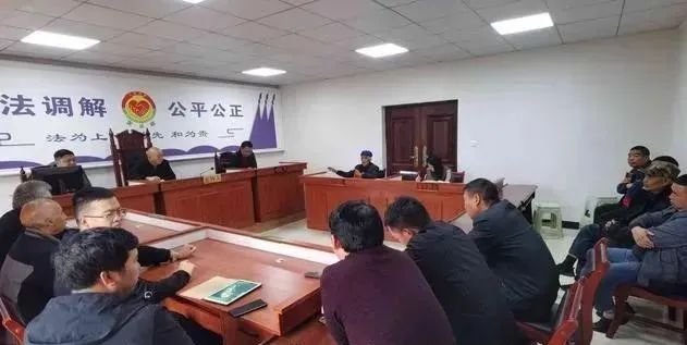 图为六曲河镇综治中心正在组织调解矛盾纠纷