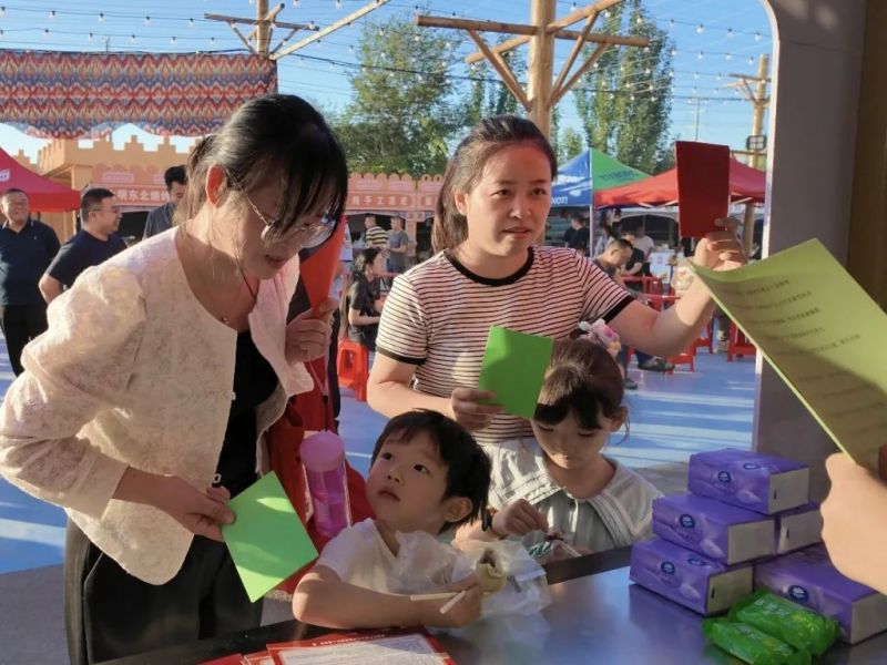 城北小巴扎夜市灯火璀璨,“法治嘉年华”摊位前人头攒动。三坪法院精心设计的“法条拼拼乐”“法眼辨是非”等趣味游戏吸引众多群众驻足参与。通过拼凑法律条文卡片、辨别日常行为合法性等互动环节,法官以案释法,用通俗语言讲解婚姻家庭、消费维权等热点法律知识。