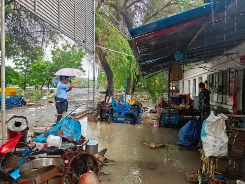 暴雨无情人有情!民警铺砖修路解商户内涝之困
