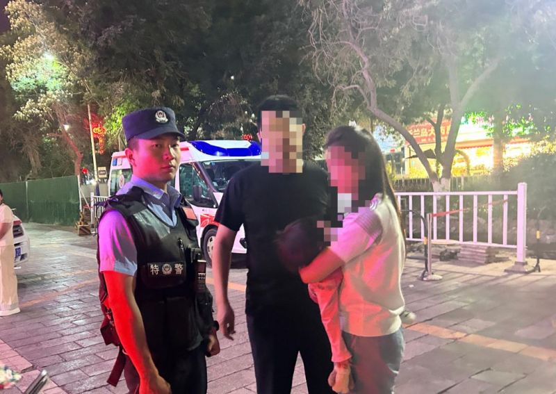 看着孩子安稳落入父母怀抱,两人悄然点头转身离开,警灯闪烁,融入了街头的夜色中。