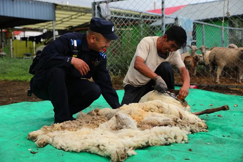这样的暖心帮扶并非个例。入夏以来,昭苏垦区公安局各边境派出所、警务站、警务室积极响应,掀起助牧行动热潮。民警辅警们严格遵循畜牧操作规范,在提升剪毛效率的同时,全力保障牲畜安全。
