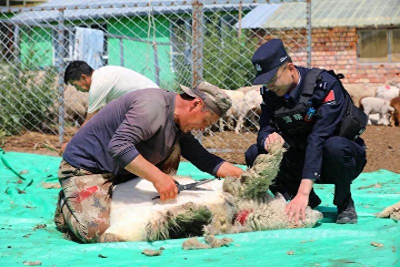 这样的暖心帮扶并非个例。入夏以来,昭苏垦区公安局各边境派出所、警务站、警务室积极响应,掀起助牧行动热潮。民警辅警们严格遵循畜牧操作规范,在提升剪毛效率的同时,全力保障牲畜安全。