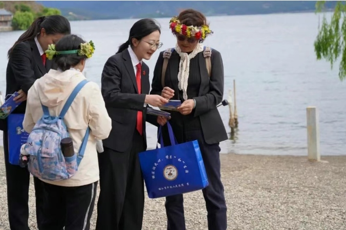 “泸沽湖是我们的家,是祖先留给我们的宝,我们很爱这里,我会把今天学到的这些法律知识传递下去,让经过这里、生活在这里的人都一起来保护它。”村民们用朴实的语言、真挚的情感给予普法法官回馈,欢声笑语回荡在湖光山色之间。
