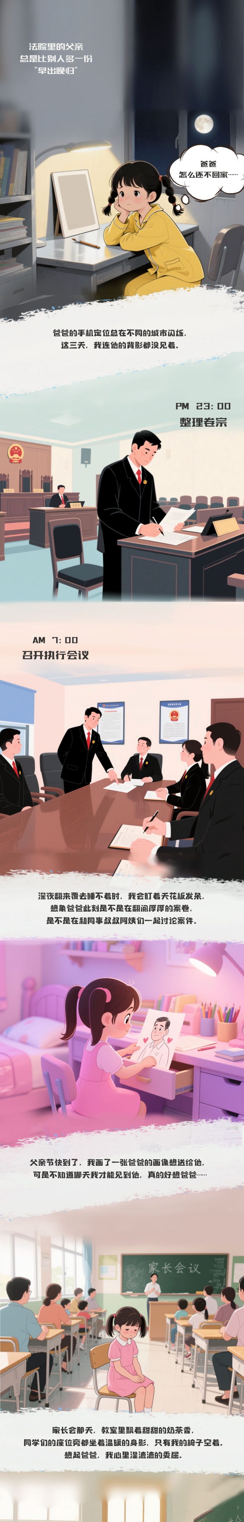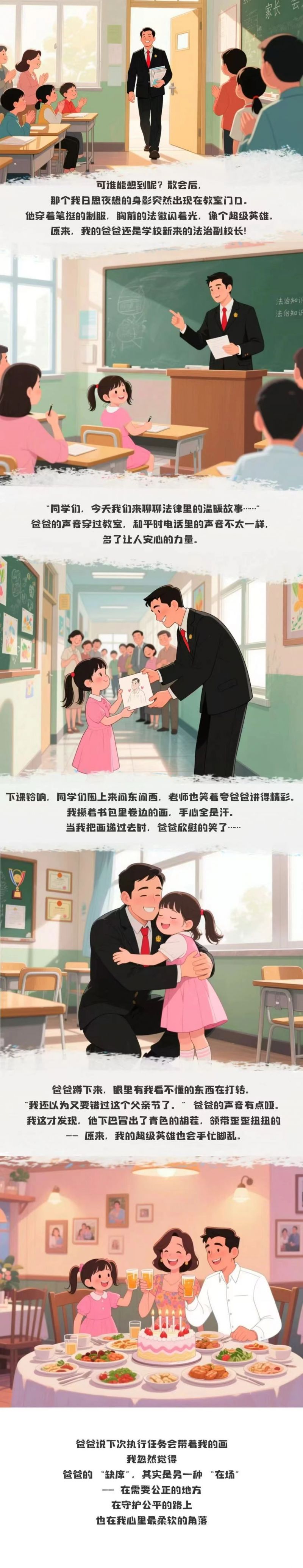 他的“缺席”是另一种 “在场” 2025-06-17 10:05 龙江政法网 字号: 在法庭上 他是身着法袍、手持法槌的法官 是正义的守护者 在调解室里 他是耐心倾听、化解矛盾的调解员 是公平的践行者 而在回家的路上 他只是一个普通的父亲 是孩子眼中那个 “总是加班”的爸爸 父亲节 让我们把目光投向那些在法院工作的父亲们 他们用责任书写职业的忠诚 也用沉默的付出诠释着 父爱的深沉 责任编辑:CmsTop 打印