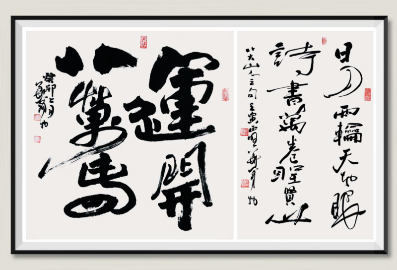 右:《日月两轮天地眼 诗书万卷圣贤心》