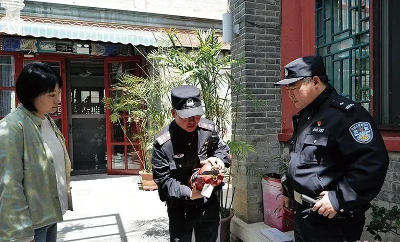 4月29日11时,记者跟随东大街派出所所长王泽、副所长陈鹏来到一家庭院民宿,查看消防设施以及“和对讲”(可以视频通话的对讲机)的使用情况。