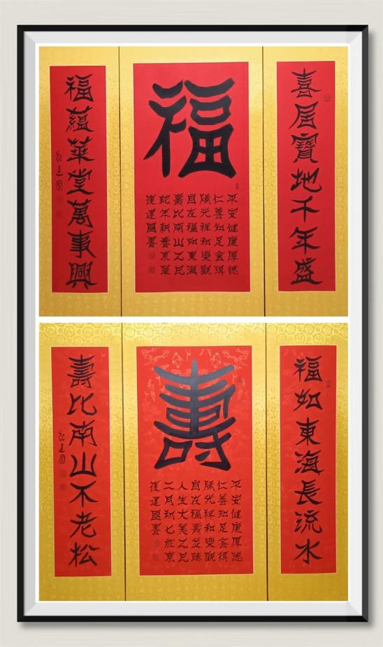 上:中堂《福》68cmx136cm 对联《喜居宝地千年盛 福蕴华堂万事兴》34cmx136cm