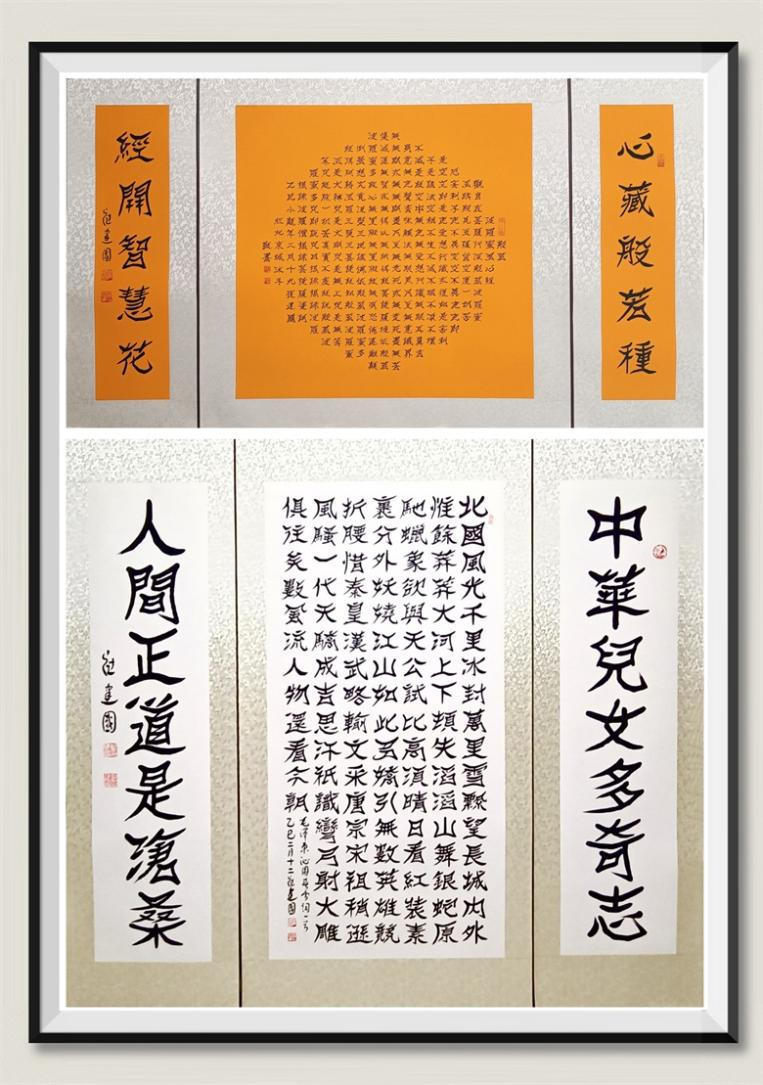 然而,崔建国并未止步于传统临摹。他深知,艺术唯有在传承中创新,方能延续生命力。经过多年潜心钻研,他创造性地推出隶书变体——既保留传统隶书横平竖直、字形扁方的基本特征,又融入现代设计的简约线条与构成理念。这种创新并非对传统的割裂,而是通过提炼《石门颂》的灵动、《乙瑛碑》的端庄,结合当代审美对笔画节奏与空间布局的理解,形成独具辨识度的艺术语言。