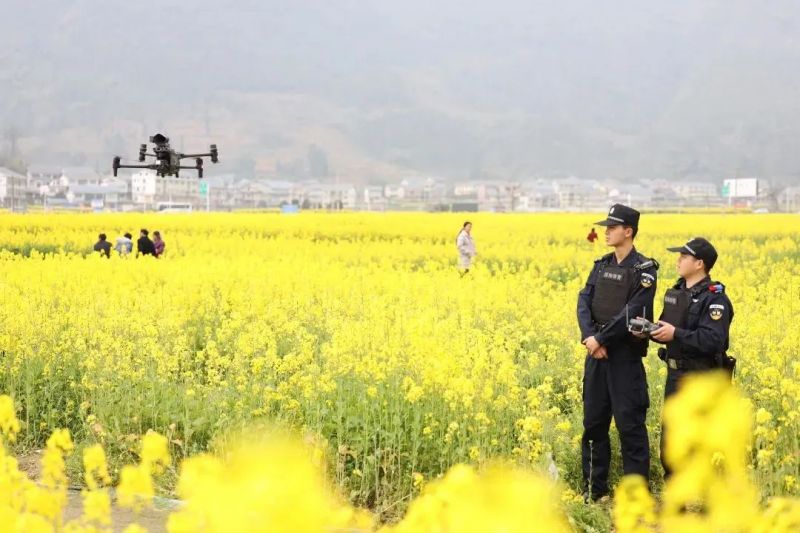 在百里杜鹃景区,搭载高清摄像头和喊话设备的无人机腾空而起,化身“空中尖兵”,实时监测客流、疏导交通;在遵义市绥阳县,警用无人机进入花海巡逻,通过热成像系统精准定位走失游客;在铜仁市江口县梵净山,“公安+部门+科技”联动机制下,智慧警务平台实现涉旅信息实时共享、游客求助“零等待”……