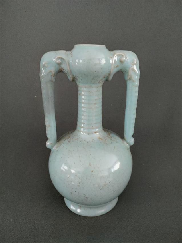 陆良民收藏作品《北宋汝窑天青釉弦纹象耳瓶》
