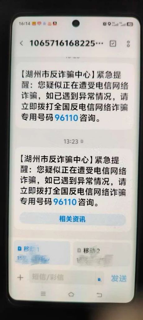 就在钟女士即将点击“会议共享”按钮的瞬间,手机突然剧烈一震。湖州市反诈骗中心的预警信息赫然弹出:“紧急提醒!您疑似正在遭受电信网络诈骗!”这条短信像一道闪电劈开了她混沌的思绪。“对啊,正规平台怎么会这么麻烦……”她突然意识到什么,手指悬停在屏幕上方,冷汗顺着后背滑下。