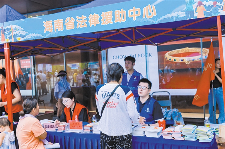 海南省法律援助中心工作人员向群众宣传未成年人保护法。(省法律援助中心供图)