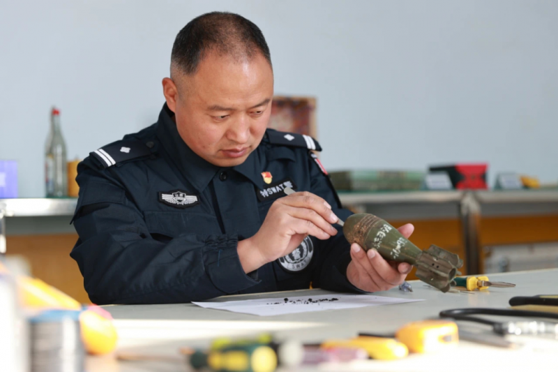 “其实我和大家一样,也是普通人,甚至更清楚排爆的风险。每一次排除的瞬间,都有万一的可能。”郭保军说,2021年,在陵川县发现一枚疑似战争遗留的生化武器炮弹。“我是主排爆手,到了现场我严格按照固定流程开始拆弹,凭借自己多年的知识储备和拆弹经验,炮弹被成功排除。但事后和北京、广东的专家交流时才知道,这颗炮弹型号非常罕见,处理起来危险系数特别高。”