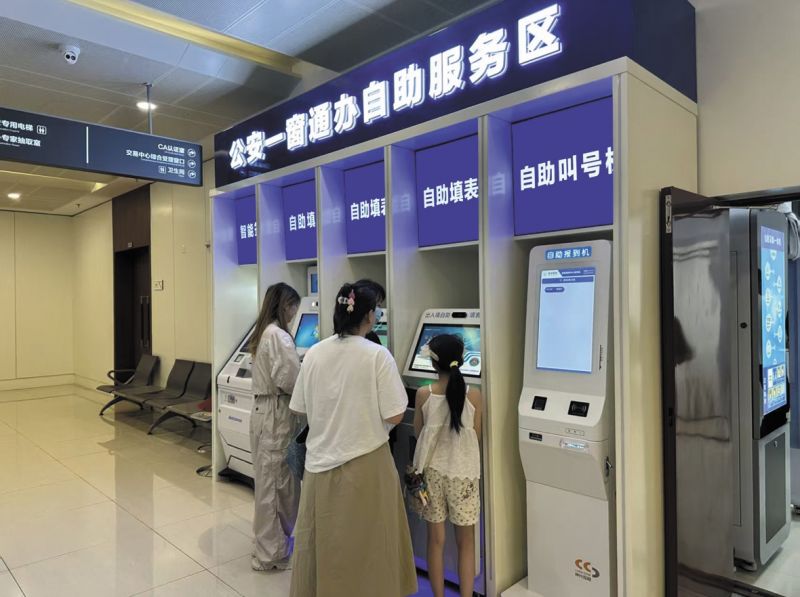 近日,记者走进长春市政务服务中心看到,到公安政务服务窗口前来办事的人络绎不绝,民警们或解答咨询,或指导群众使用自助机办理业务,或为群众办理业务。