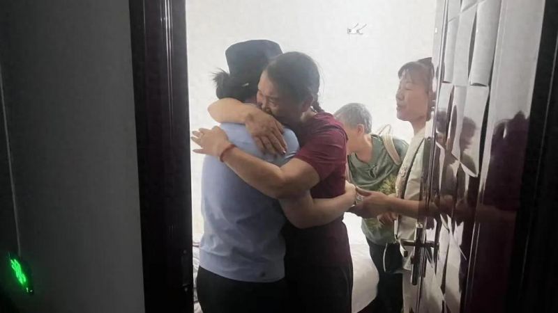随即便打电话向饶女士进行确认,在得到肯定后,当日下午,在户籍民警李艾洁的陪同下,饶女士终于与外甥得以相认团圆。