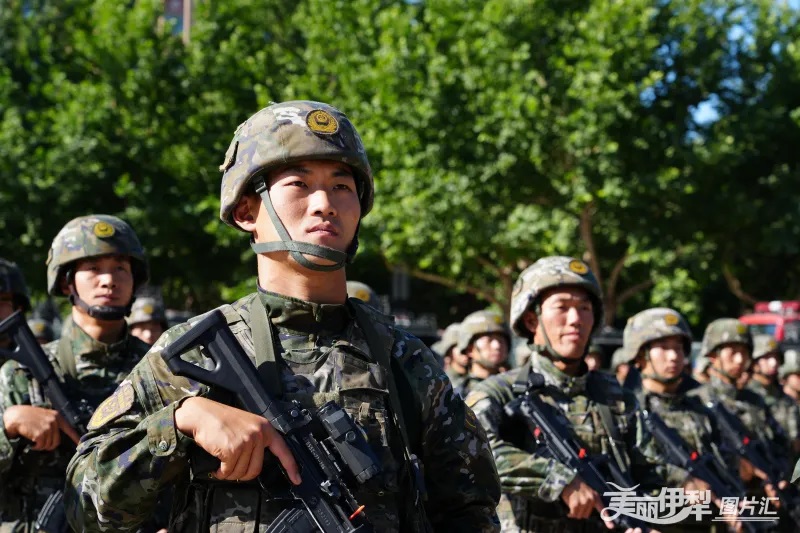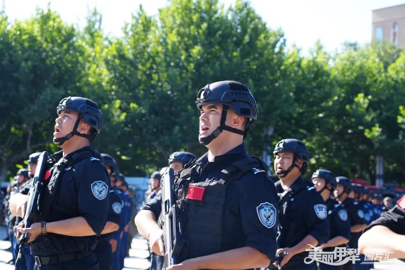 7月3日上午,新疆伊犁哈萨克自治州反恐维稳誓师大会在伊宁市人民广场举行,驻伊部队官兵、武警官兵、公安民警、消防救援人员,用铮铮誓言彰显打击暴恐、震慑敌人、维护稳定的坚强决心。