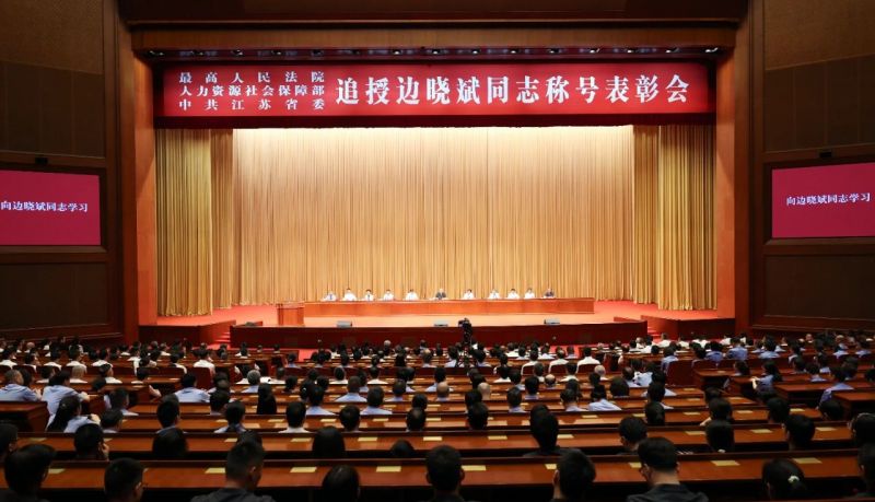 最高法、人力资源社会保障部、江苏省委联合召开追授边晓斌同志称号表彰会