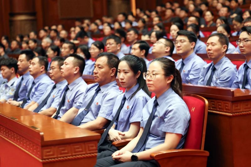 全国人大代表宋燕、刘忠斌、王红军、李鸿彬、高华瑞,全国政协委员林敏洁,最高法、人力资源社会保障部有关部门负责同志,江苏省直有关部门负责同志,省直政法各单位负责同志及干警代表,扬州市、仪征市有关负责同志,各中院负责同志及法院干警代表等近1000人参加会议。(记者:白龙飞丨摄影:孙若丰)
