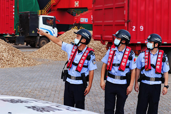 “这艘运载3.8万立方米木片的‘幸运6666轮’是昨天台风天后靠泊进来的,预计2到3天就可以卸货完毕驶离。”现场执勤的漳州出入境边防检查站民警李新生介绍道。