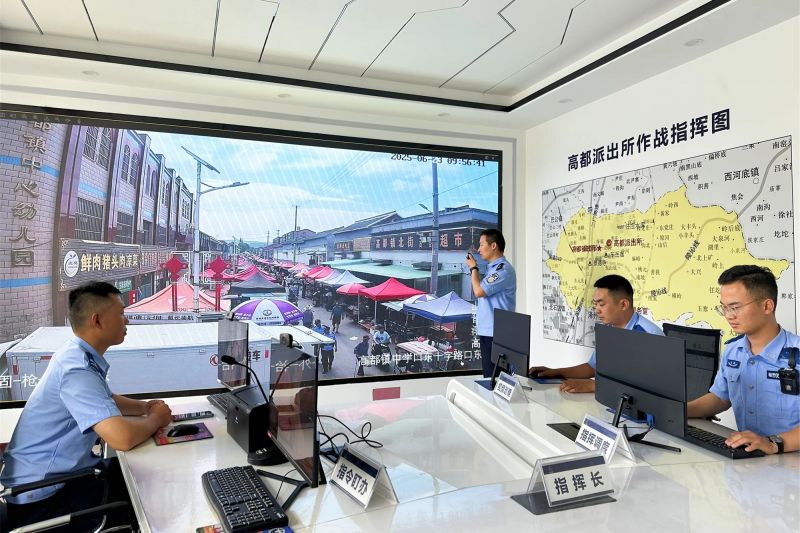 沿街商铺的高清摄像全覆盖,民警佩戴4G执法记录仪动态巡防,云喇叭动态播放“赶集安全防范”温馨提示,构建起“地空联勤”的立体化巡防网络。
