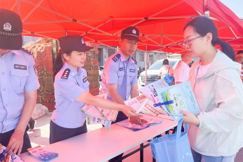 “来来来,看一看,民警摆摊讲反诈、讲禁毒、讲安全……”4月25日,在大集中心位置,一个“集市警务”宣传摊格外显眼,过往群众纷纷驻足观看。