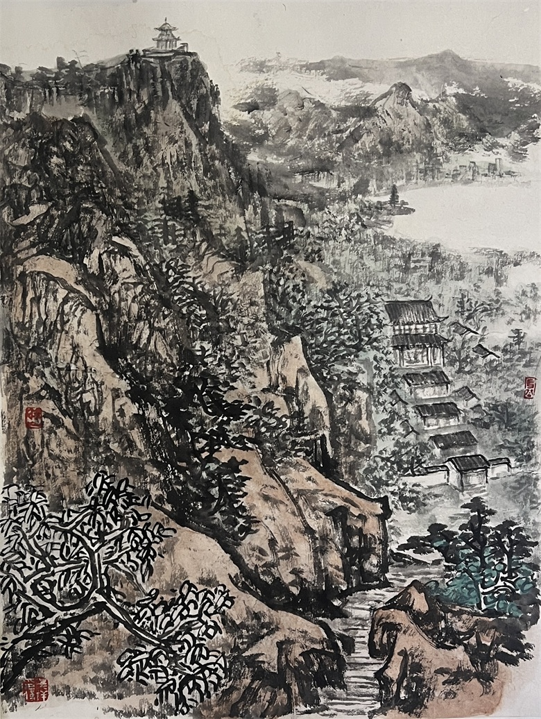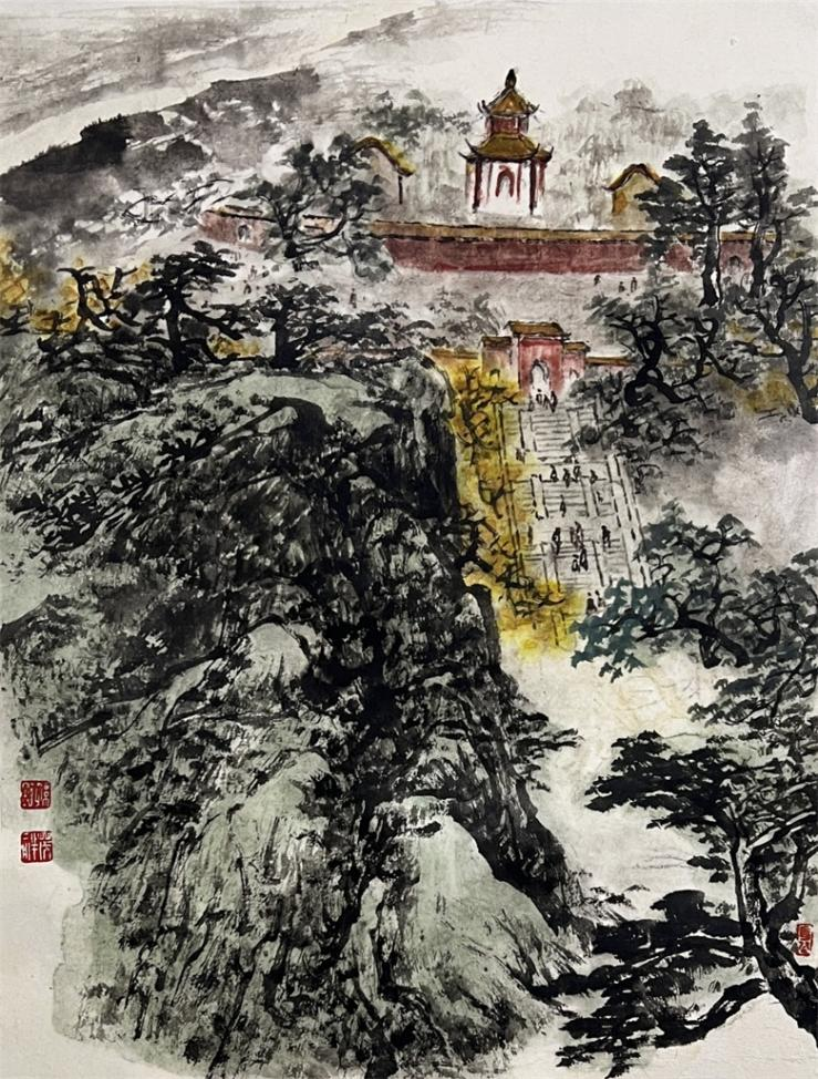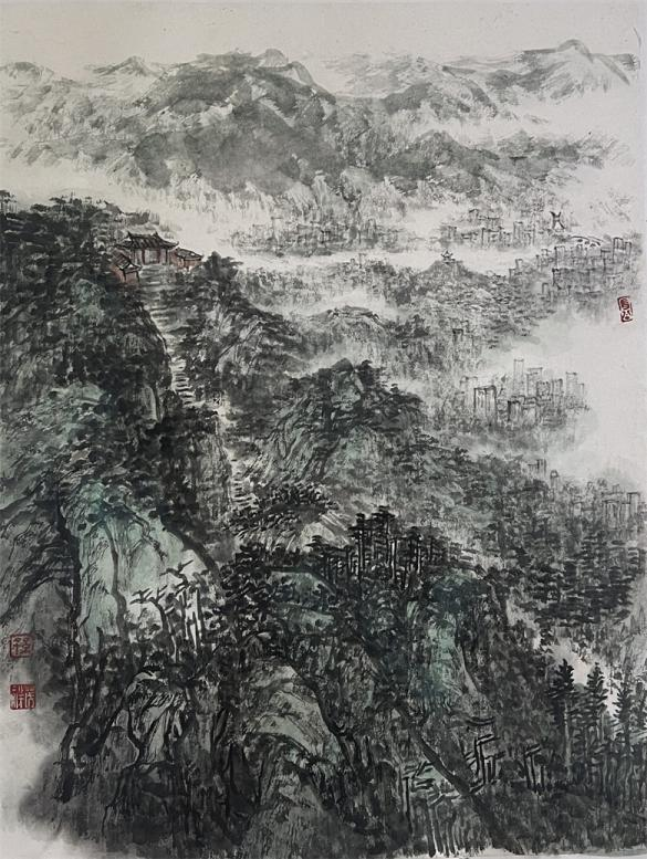 上图:孙茂祥绘画作品《彭城七里·云龙烟霞绕古寺》