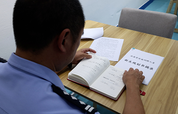 民警查看临刑释罪犯新生留言