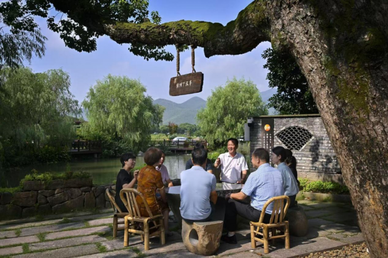 村民们在大樟树下议事。新华网发 杭州市余杭区委宣传部供图