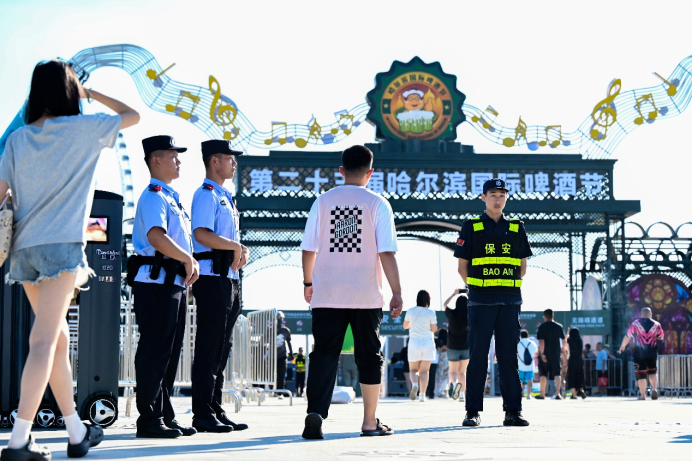 为确保中国·哈尔滨国际啤酒节安全有序进行,近期,黑龙江省哈尔滨市公安局在啤酒节活动现场开展巡逻防控、秩序维护等工作。