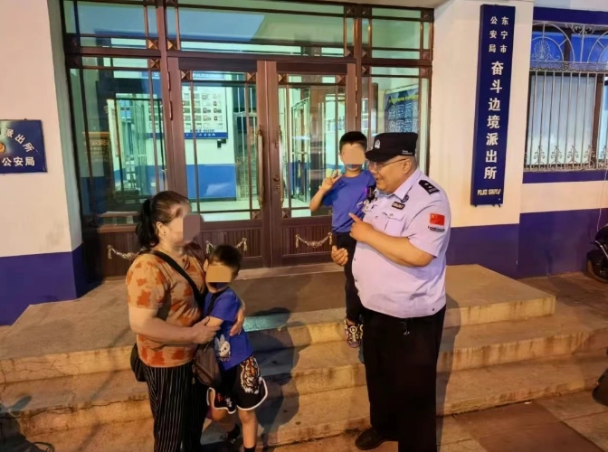 “警察同志,我的两个外孙走丢了!”近日,黑龙江省牡丹江东宁市公安局奋斗边境派出所民警在巡逻时接到一位老人求助。民警了解其外孙的走失地点、体貌特征等情况后,立即行动,兵分两路,仔细搜寻每一个角落。经过耐心寻找,民警在体育场内一角落台阶上发现两名中俄混血儿童,核实身份信息后,将小孩送回老人身边。“真是太感谢警察同志了,我这悬着的心终于放下了!”看到外孙们安然无恙,老人激动地对民警连声表示感谢。